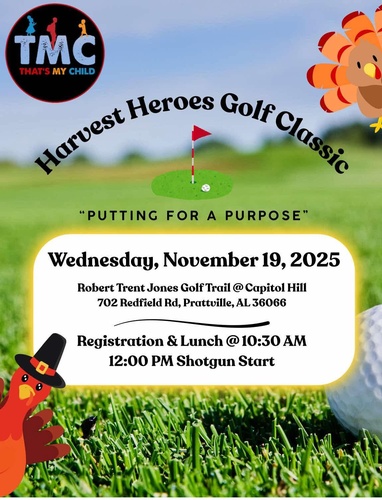 Mark your calendar for That's My Child's 5th Annual Golf Tournament on Wednesday, November 19, 2025, at the prestigious Robert Trent Jones Golf Trail - Capitol Hill in Prattville.