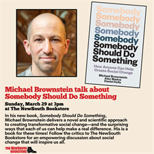 In his new book, Somebody Should Do Something, Michael Brownstein delivers a novel and scientific approach to creating transformative social change—and the surprising ways that each of us can help make a real difference. His is a book for these times! Follow the critics to The NewSouth Bookstore for an empowering discussion about social change that will inspire us all: Sunday, March 29, 2026 at 3:00 p.m.