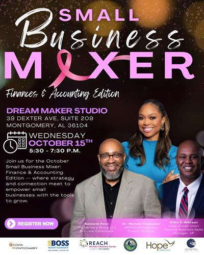 October is Breast Cancer Awareness Month, and we’re bringing the community together for an evening of education, empowerment, and resources that matter. This special edition of our Small Business Mixer dives into one of the most-requested topics from entrepreneurs in our network: Business Finances.